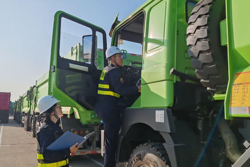 圖為:海關(guān)關(guān)員對(duì)出口幾內(nèi)亞工程車輛現(xiàn)場(chǎng)查驗(yàn) 韓云婷/攝