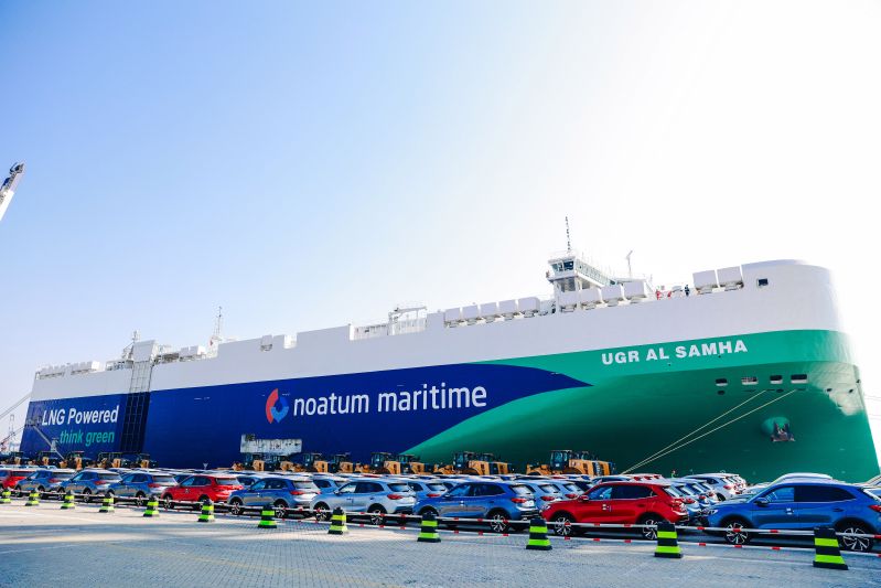 環(huán)保滾裝船帶貨首航 煙臺港新能源商品車單船發(fā)運量創(chuàng)新高(圖)