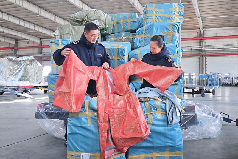 不出正月都是年。近日,在辦結(jié)海關(guān)通關(guān)手續(xù)后,搭載著極具中國傳統(tǒng)文化特色的漢服、湯圓、家居飾品等跨境電商商品的全貨包機(jī)從山東煙臺機(jī)場起飛,前往韓國首爾仁川機(jī)場。