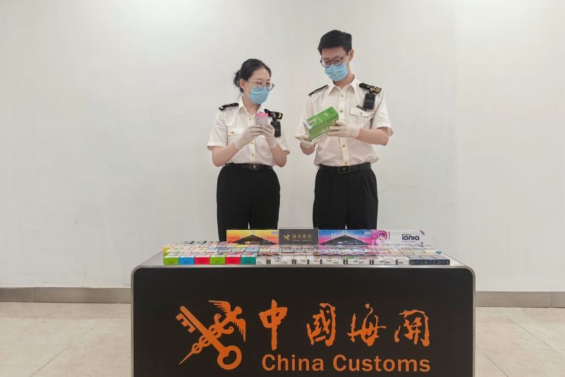 海關(guān)關(guān)員在對(duì)進(jìn)境旅客行李物品進(jìn)行監(jiān)管時(shí),發(fā)現(xiàn)一名選擇“無申報(bào)通道”入境的旅客,其手提和托運(yùn)的行李機(jī)檢圖像異常。經(jīng)開箱查驗(yàn),在該旅客行李中查獲多品牌拆條成盒的卷煙110盒、共計(jì)2200支,