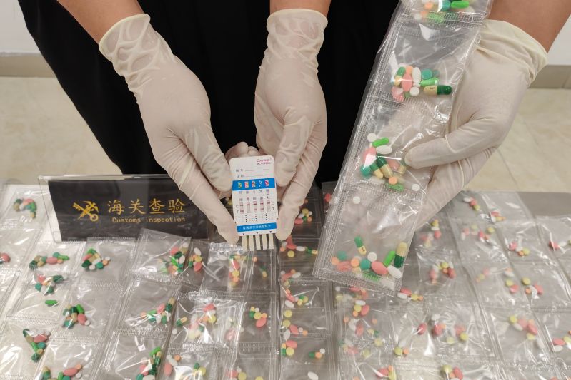 海關(guān)關(guān)員在對(duì)入境航班進(jìn)行監(jiān)管時(shí),發(fā)現(xiàn)一名選擇“無(wú)申報(bào)通道”入境的旅客行李機(jī)檢圖像異常。經(jīng)開(kāi)包查驗(yàn),查獲用透明塑料袋簡(jiǎn)單包裝的彩色粒狀產(chǎn)品177包,共計(jì)1121粒。這些產(chǎn)品無(wú)生產(chǎn)日期、無(wú)質(zhì)量合格證明、無(wú)生產(chǎn)廠家。旅客自述這些產(chǎn)品用于減肥。
